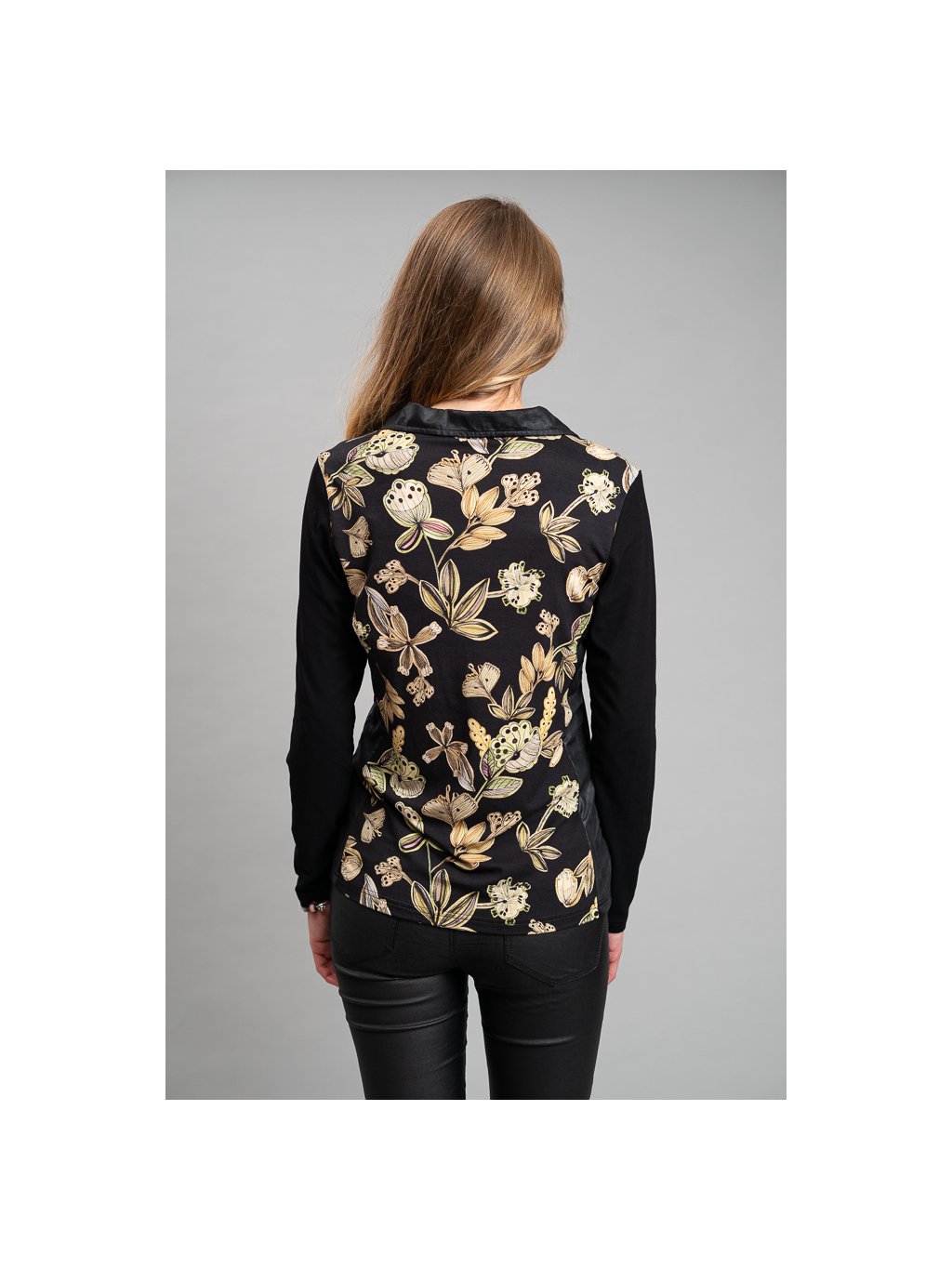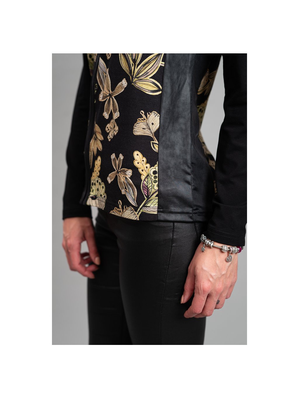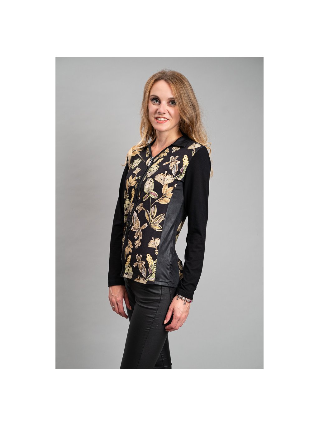 Design je doplněn kombinací s imitací kůže, která halence dodává výrazný a stylový charakter.