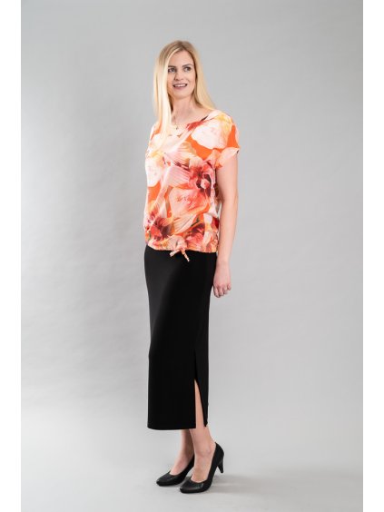 Kulatý výstřih, krátký rukáv, na zádech výstřih do -V- podtrhuje elegantní styl tuniky.