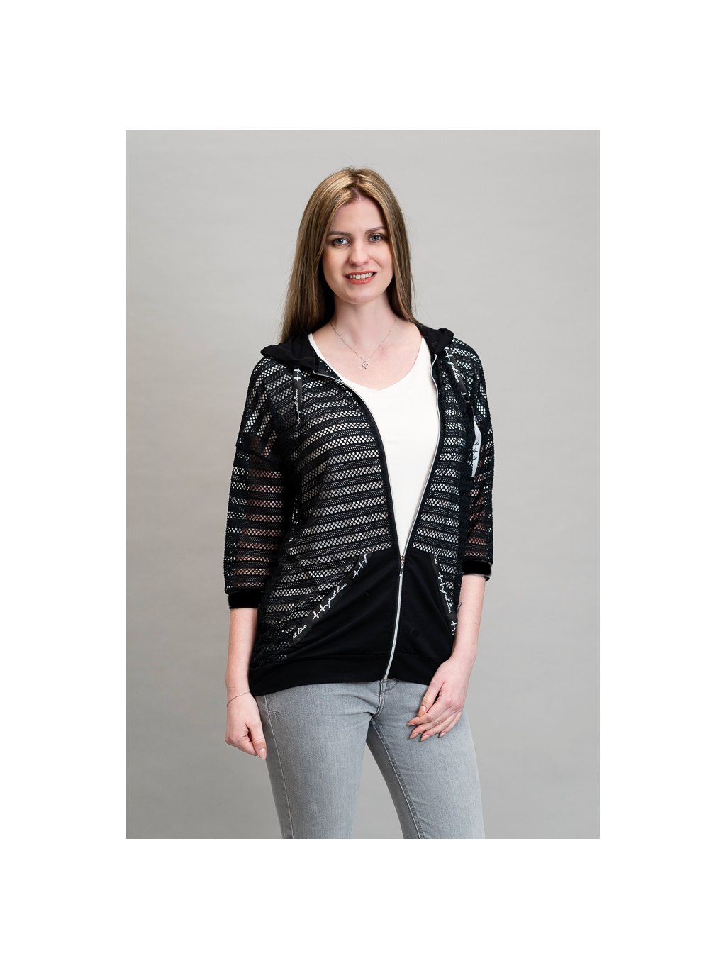 Mikina má 3/4 rukávy, které dodávají modelu lehkost a moderní vzhled, a propínací zapínání,