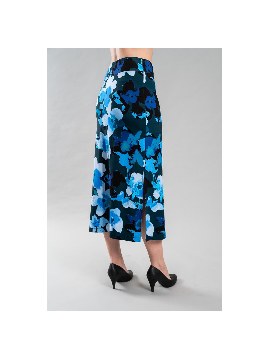 Sukně má v pase má vyšší lem a v délce jsou rozparky.