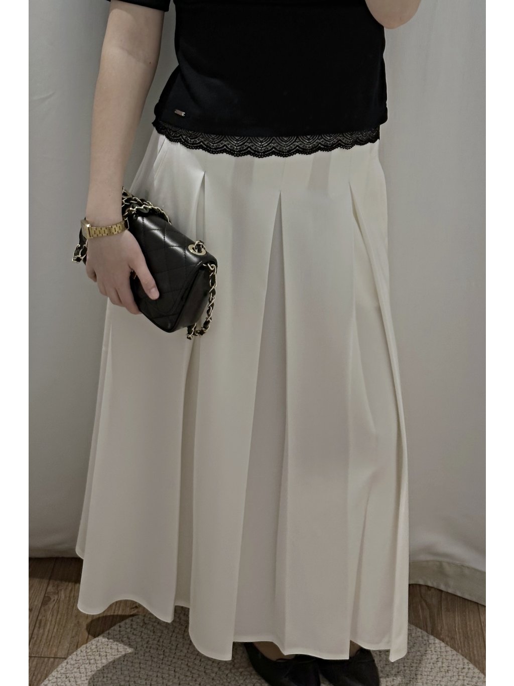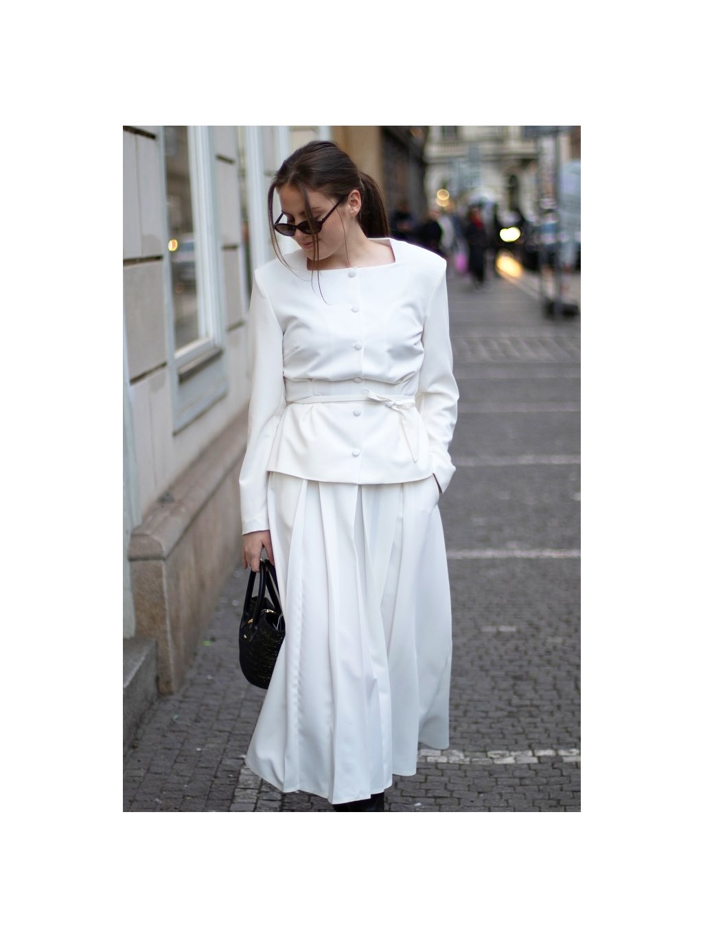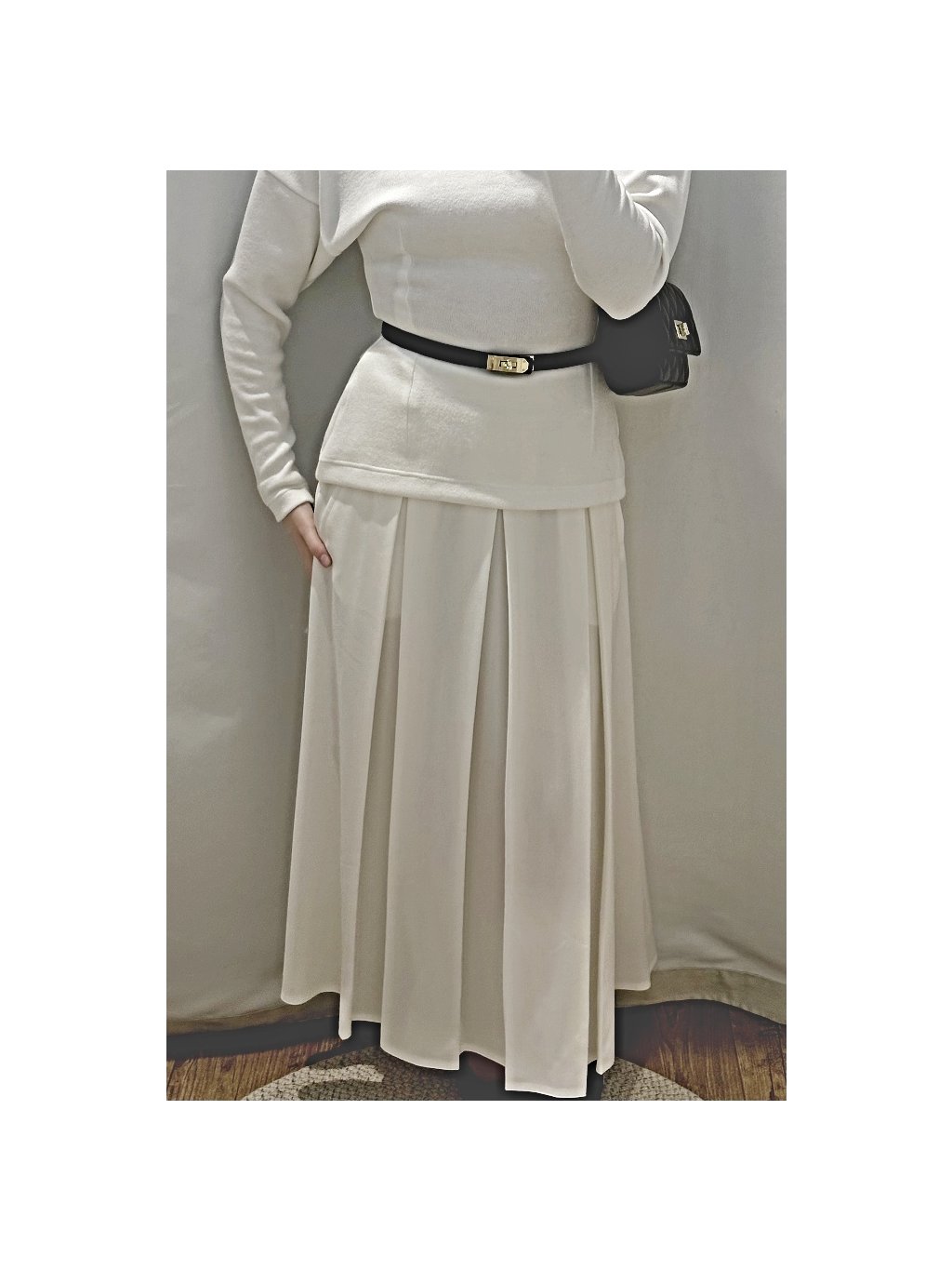 Sukně má odšité protizáhyby, které dodávají modelu elegantní objem a krásný pohyb při chůzi.