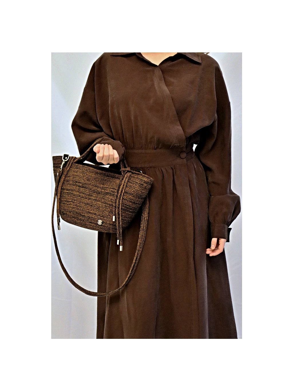 Díky zavinovacímu řešení se šaty krásně přizpůsobí a působí přirozeně elegantním dojmem.