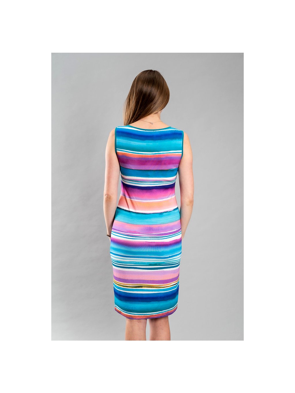Letní pouzdrové šaty z měkkého úpletu s lodičkovým výstřihem na široká ramínka.