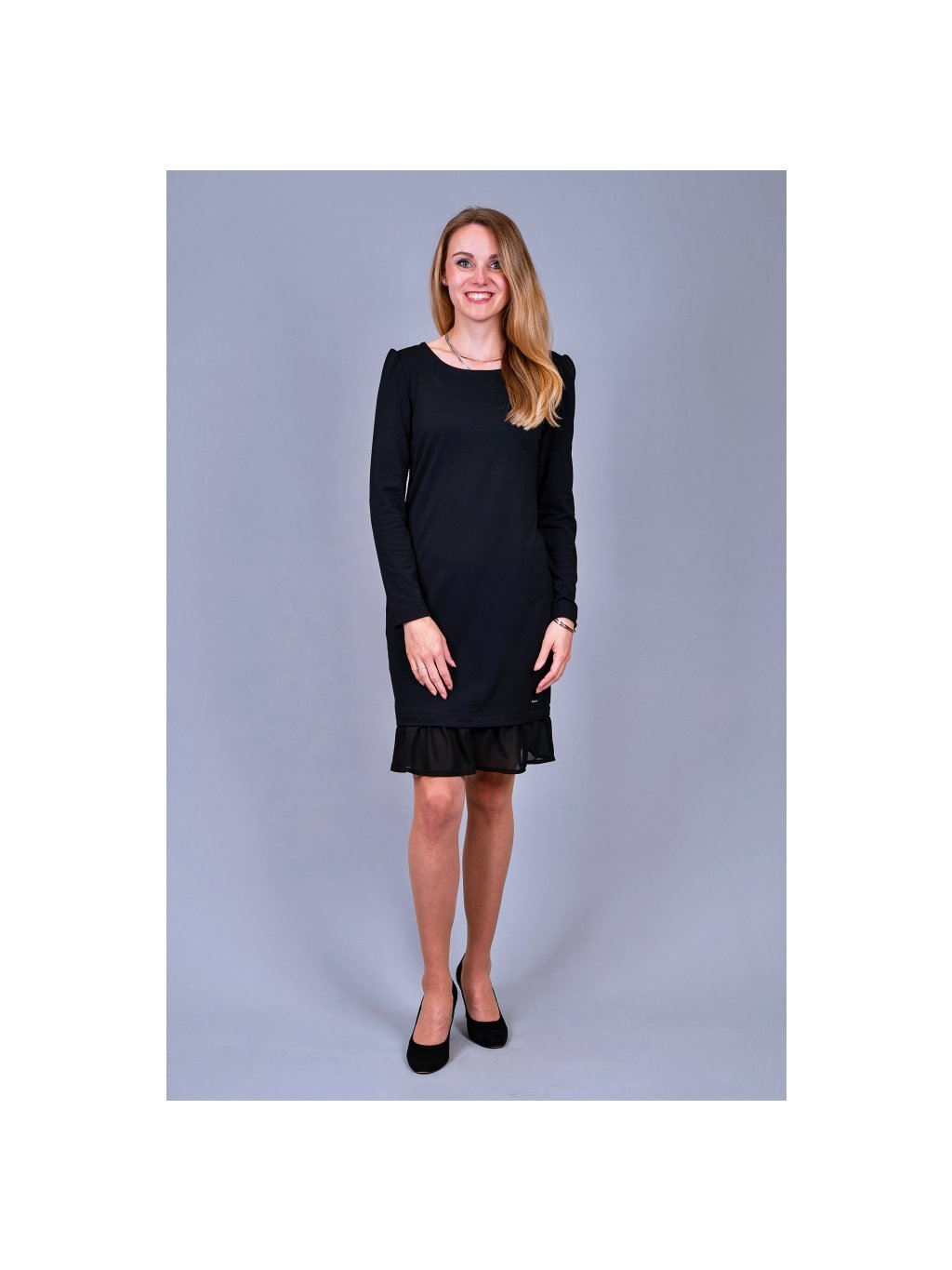 dlouhý rukáv, v délce šatů je šifónový volánek, který dodá na eleganci.