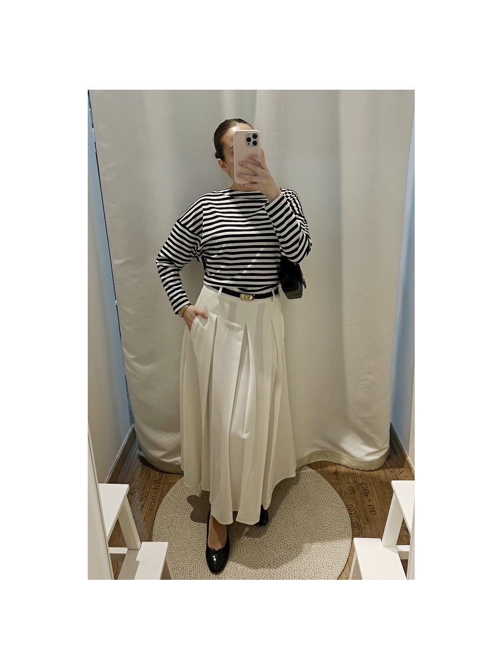 Tričko má volnější pohodlný střih, který poskytuje dostatek volnosti při nošení a lichotí různým typům postavy. Lodičkový výstřih elegantně zvýrazňuje linii ramen a dodává modelu jemně ženský vzhled.