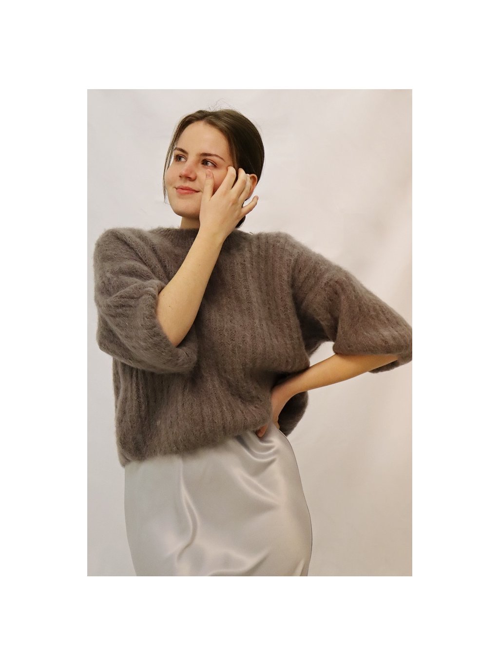 Dámský svetr kr.rukáv Mohair, šedo-oříšková