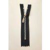 Krátký zip kapsový - jemný, černý 10 cm, zuby 4 mm, bílý kov