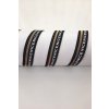 Máme zde pruženku, černou se zlatým proužkem a bílým potiskem NICE.