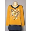 Halenka je členěná, kombinovaná s proužkem z imitace kůže,