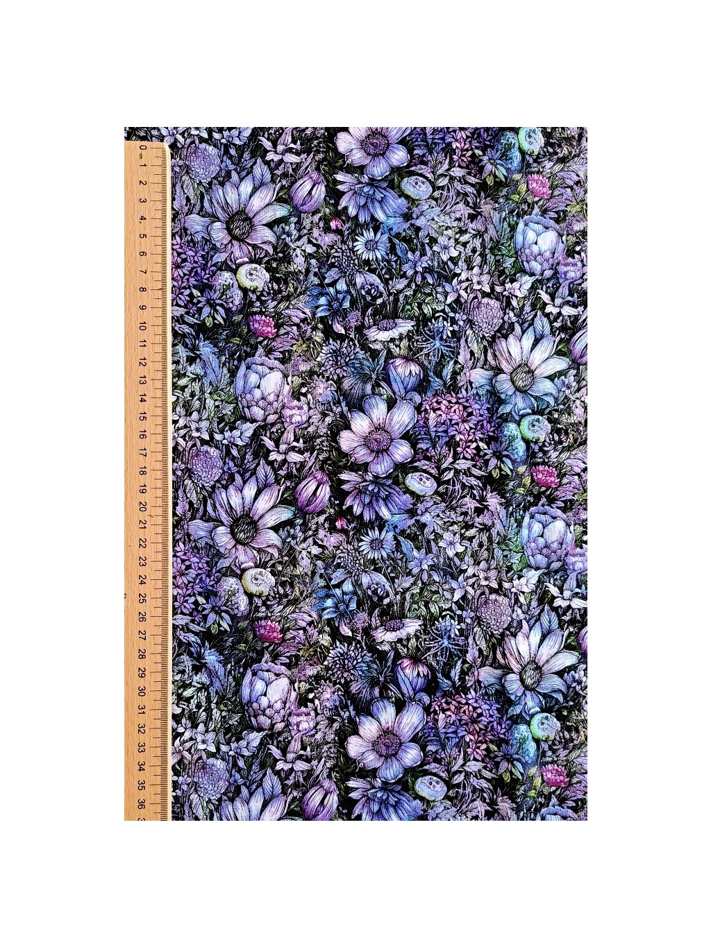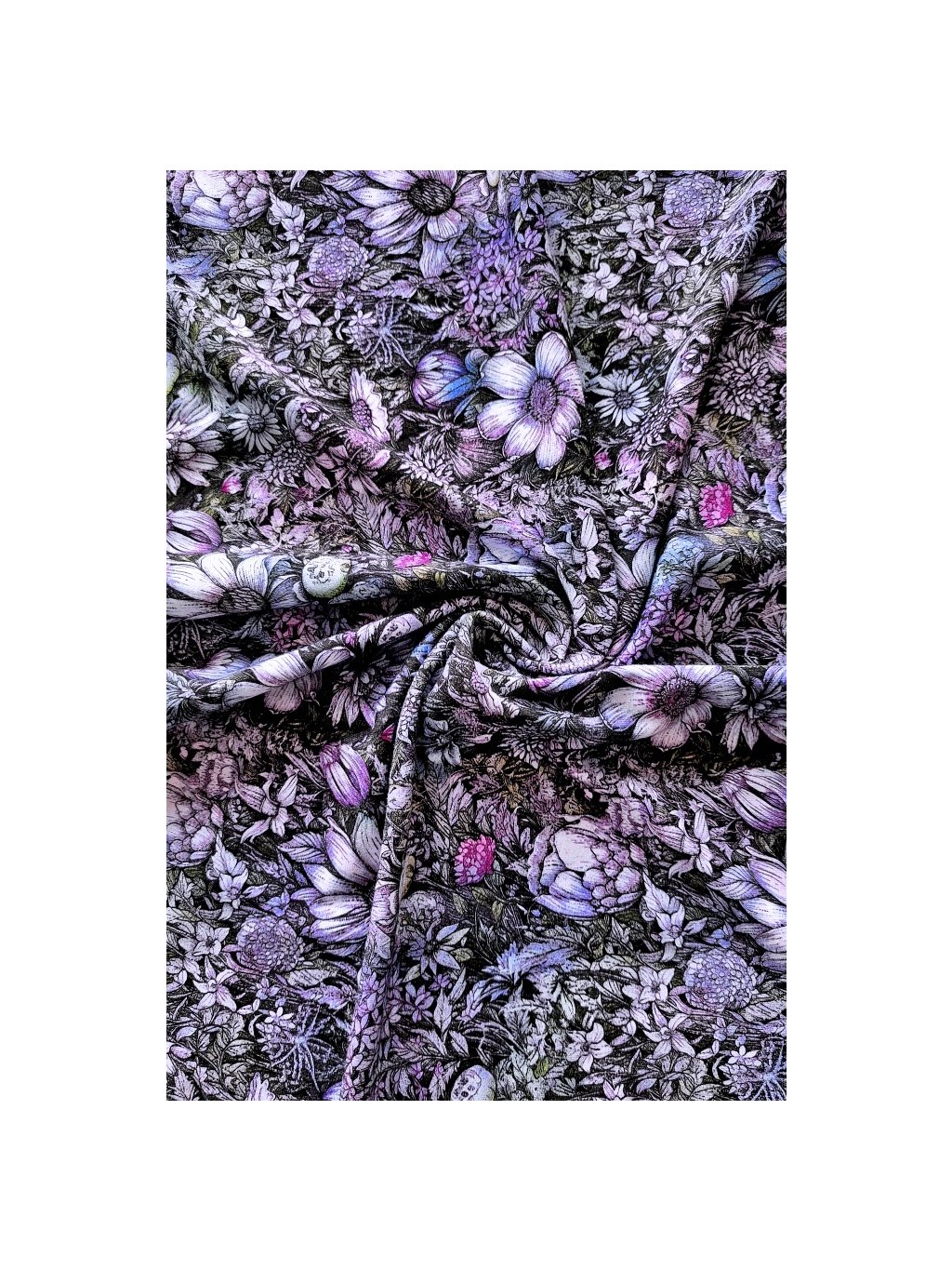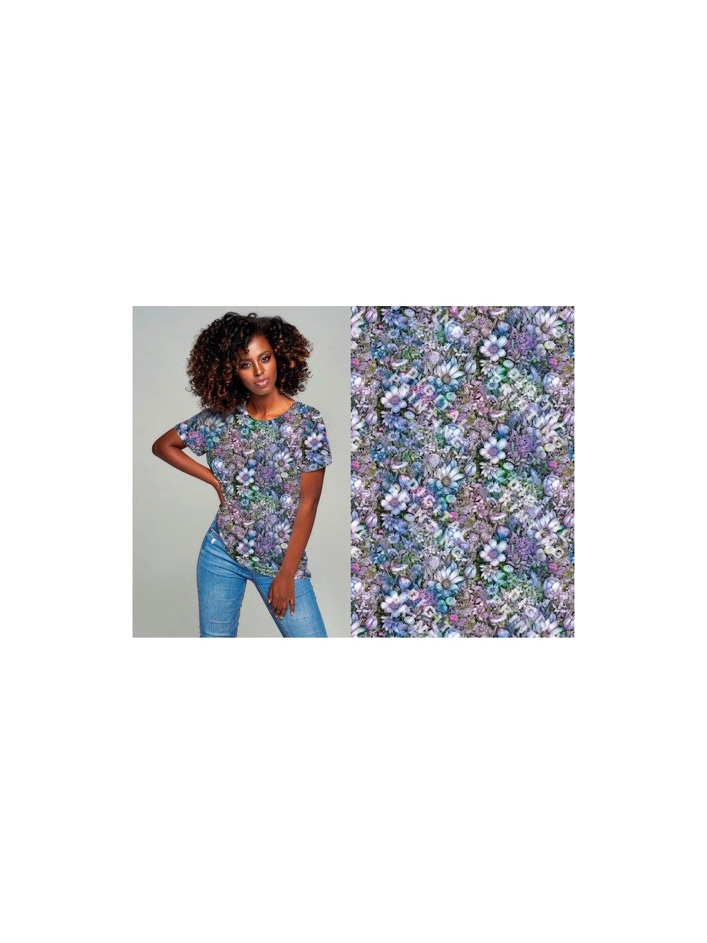 Viskóza tisk - drobné květy na fialové, prémiová kvalita