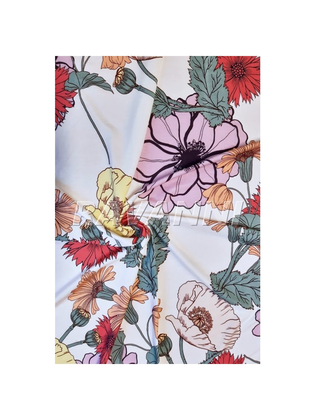 Viskóza tisk letní květy - 200, bílá